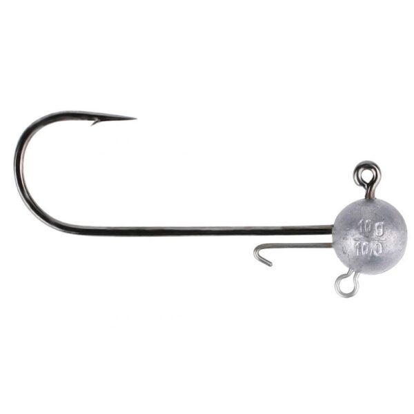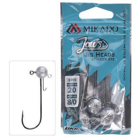 Główki MIKADO Jaws Stinger Eye Jig to wszystkie najlepsze komponenty i rozwiązania zaczerpnięte z główek Jaws Classic Jig. Najwyższej jakości kute haki stanowiące solidną bazę dla tych główek, to tylko pierwszy z niekwestionowanych atutów tego produktu. Kolejnym jest niewielki haczyk zapewniający stabilne utrzymywanie się przynęty na swoim miejscu, a jednocześnie nie rozrywający jej, jak to niejednokrotnie ma miejsce w główkach z kołnierzem. Ostatni, ale nie mniej ważny detal, to opis znajdujący się na główce. Ileż to razy po wysypaniu różnych główek z paczek do pudełka pojawia się myśl, jaki rozmiar haka teraz wybrać…? Dlatego na główkach MIKADO Jaws Stinger Eye Jig oprócz opisu gramatury, który jest już standardem, pojawił się opis wielkości haka, aby jeszcze bardziej ułatwić wędkarzom dobór odpowiedniej główki. Od główek Jaws Classic Jig odróżnia je to, że posiadają dodatkowe oczko oznaczone jako Stinger Eye umiejscowione z tyłu główki i przeznaczone do łatwiejszego zamocowania różnego rodzaju, jakże popularnych w dzisiejszych czasach, dozbrojek.