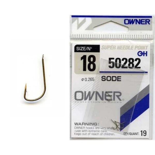 model SODE, to jedne najpopularniejszych kształtów w bogatej gamie firmy OWNER. Zostały wykonane z wysokowęglowej stali, która zapewnia bardzo dużą wytrzymałość. To co pierwsze rzuca się w oczy to precyzja wykonania. Dzięki specjalistycznemu procesowi chemicznego ostrzenia, japoński producent osiągnął nadzwyczajną ostrość i odporność na stępienie. Cieńszy drut sprawia, że jest to idealny hak do łowienia na białe robaki lub ochotkę. Podgięty łuk kolankowy bardzo dobrze trzyma rybę podczas holu i redukuje liczbę spinek.