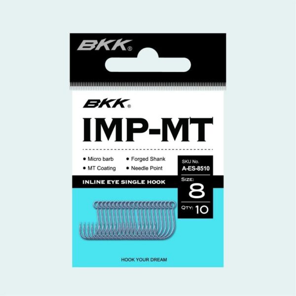 Haczyk BKK IMP-MT idealnie pasuje do finezyjnego i średnio lekkiego łowienia na przynęty zarówno w wodzie słodkiej, jak i słonej. Haczyk jest wyposażony w mikrozadzior, co z jednej strony pozwala na szybsze zacięcie, a z drugiej strony na szybsze wyhaczenie ryby. Dodatkowo matowa powłoka haczyka z cyny zapewnia doskonałą odporność na korozję w słonej wodzie oraz utrzymuje ostrość haczyka przy kontaktach z kamieniami i innymi podwodnymi przeszkodami.