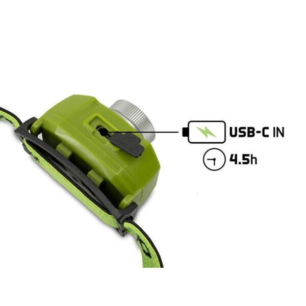 Diody LED zapewniają białe lub zielone światło. Po pierwszym naciśnięciu przycisku czołówka świeci białym światłem o 100% intensywności i żywotności baterii wynoszącej 5 godzin. Drugie naciśnięcie daje 60% intensywności przy 9-godzinnej żywotności baterii, a trzecie naciśnięcie 30% przez 20 godzin. Gdy przytrzymasz ten sam przycisk, zielone diody z boku zaświecą się z żywotnością baterii wynoszącą 20 godzin. Wielokrotne naciśnięcie przycisku aktywuje miganie zielonych diod. Zielone światło nie przyciąga nieprzyjemnych owadów i docenisz je podczas walk ryb, ponieważ zielone światło nie jest dla nich tak przerażające jak białe światło.