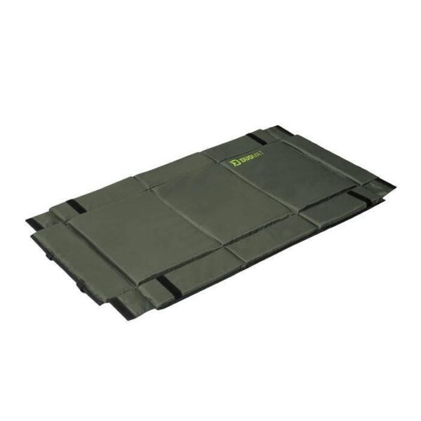 Delphin DUOMAT to właściwy wybór dla wędkarzy, którzy nie mają wystarczająco dużo miejsca, aby nosić dużą matę kołyskową. Mata ma grubą wyściółkę, która może chronić nawet największe karpie. Pianka zastosowana do jej wyściółki oferuje o około 30% większa gęstość niż w przypadku innych. Nie ma ryzyka obrażeń ryby, nawet na skalistej powierzchni. Wyróżnia się ona jakością wykonania i użytego materiału. DOUMAT oznacza również, że tę matę do odhaczania można używać jako matę standardową bez podniesionych krawędzi, lub możemy po prostu podnieść te krawędzie i przymocować je za pomocą zapięć na rzepy znajdujących się w każdym rogu. Tworzy to bezpieczniejszą matę z podniesionymi krawędziami. Może to zapobiec wydostawaniu się ryby i być może jej zranieniu. Mata jest również wyposażona w dwie metalowe szpilki i wszyte oczka, które służą do przymocowania do podłoża podczas wietrznej pogody. Na te szpilki zaprojektowano małą kieszeń, dzięki czemu są zawsze pod ręką. Mata wykonana jest z szybko schnącego materiału, który jest łatwy do czyszczenia. Dzięki przemyślanej konstrukcji i wysokiej jakości detali, nasza mata do odhaczania DUOMAT otrzymała nagrodę Grand Prix na targach For Fishing 2020 w kategorii: najciekawszy produkt targów. DUOMAT to wysokiej jakości i bardzo kompaktowa opcja maty kołyskowej, która jest znacznie łatwiejsza do przenoszenia.