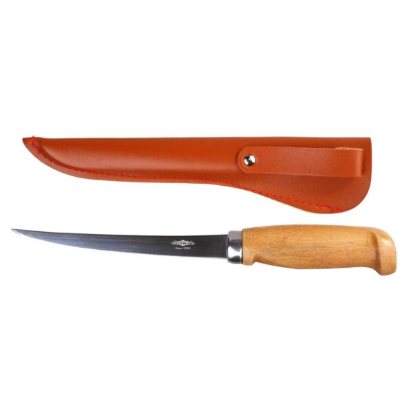 Najwyższej klasy, wykonany z japońskiej stali nierdzewnej nóż do filetowania ryb. Niewiarygodnie lekki, o specjalnie wyprofilowanym, odpowiednio miękkim ostrzu idealnie dopasowuje się do kręgosłupa ryby, dzięki czemu mięso jest odcinane przy samej kości.