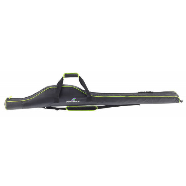 Podszyty futerał transportowy na dwie wędki z kołowrotkami. Grube wyściełanie zapewnia optymalną ochronę dla wędki i kołowrotka. Dolna część pokryta gumą chroniącą przed przedostawaniem się wilgoci. Z obszytym pasem na ramię i uchwytem transportowym.
