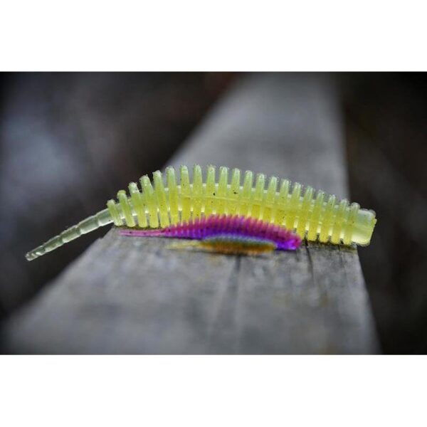 Sekret skuteczności Tanty tkwi w jej delikatnym, żebrowanym korpusie zakończonym niewielkim ogonkiem. Taka budowa sprawia, że podczas prowadzenia intensywnie pracuje ogon oraz tylna część korpusu. Poprzeczne pręgi dodatkowo wytwarzają silne drgania, które skutecznie pobudzają ryby do ataku. Wszystkie przynęty zostały nasączone silnym zapachem raka, co dodatkowo zwiększa ich atrakcyjność.