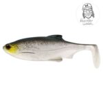 Charakterystyczną cechą tej przynęty jest żebrowany korpus, którego nie znajdziesz u innych producentów. Miękki silikon sprawia, że ogon jaskółki intensywnie faluje w wodzie, przyciągając uwagę drapieżników. Nacięcia na brzuchu i w korpusie ułatwiają montaż haka offsetowego.