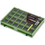 Te wysokiej jakości pudełka na przynęty są wykonane z niezwykle wytrzymałego i odpornego na uszkodzenia materiału ABS. Dzięki uszczelce na pokrywie woda nie może przedostać się do środka, a wszystkie elementy wewnątrz są doskonale chronione przed wilgocią i wodą. Pudełka dostarczane są z dopasowanymi podkładkami magnetycznymi, które można łatwo wkleić w celu dodatkowego zabezpieczenia zawartości – idealne do haczyków, krętlików, zacisków itp. Podstawy pudełek są skonstruowane w sposób umożliwiający połączenie ze sobą dwóch pudełek. Dostępna w wersji płaskiej (zielona) i wysokiej (czerwona). Wykonane w Japonii.