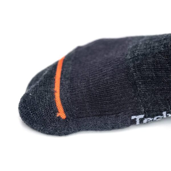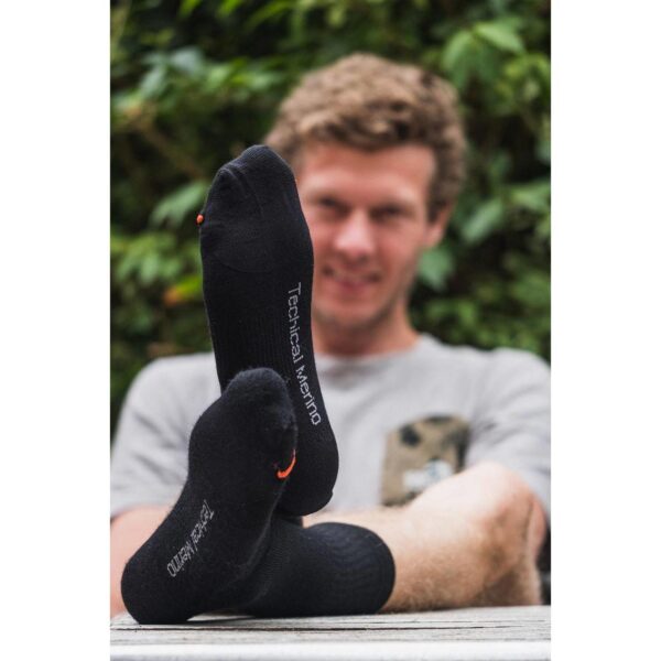 - Materiał Merino Wool: Naturalna wełna merino o właściwościach antybakteryjnych i antyzapachowych. Doskonale odprowadza wilgoć, pozostawiając stopy suche nawet podczas intensywnego wysiłku.
