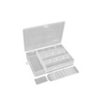 Popularna skrzynka na sprzęt wędkarski zawiera tace z regulowanymi przegródkami i dużą ilością miejsca do przechowywania poniżej. Na pokrywie znajdują się dwie przegrody z dostępem od góry, które zapewniają dodatkowe miejsce do przechowywania.