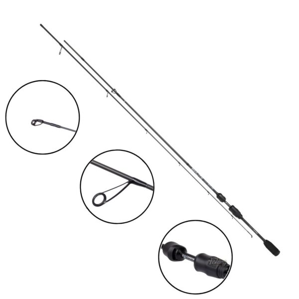 Dwuczęściowa konstrukcja zapewnia wygodny transport przy długości transportowej wynoszącej zaledwie 103 cm, a niska waga 80g gwarantuje komfort podczas długich sesji wędkarskich. Pusta szczytówka zwiększa czułość wędki, pozwalając na precyzyjne wyczuwanie nawet najdelikatniejszych brań.